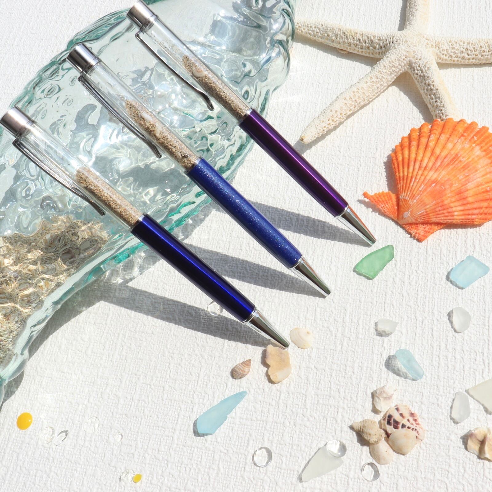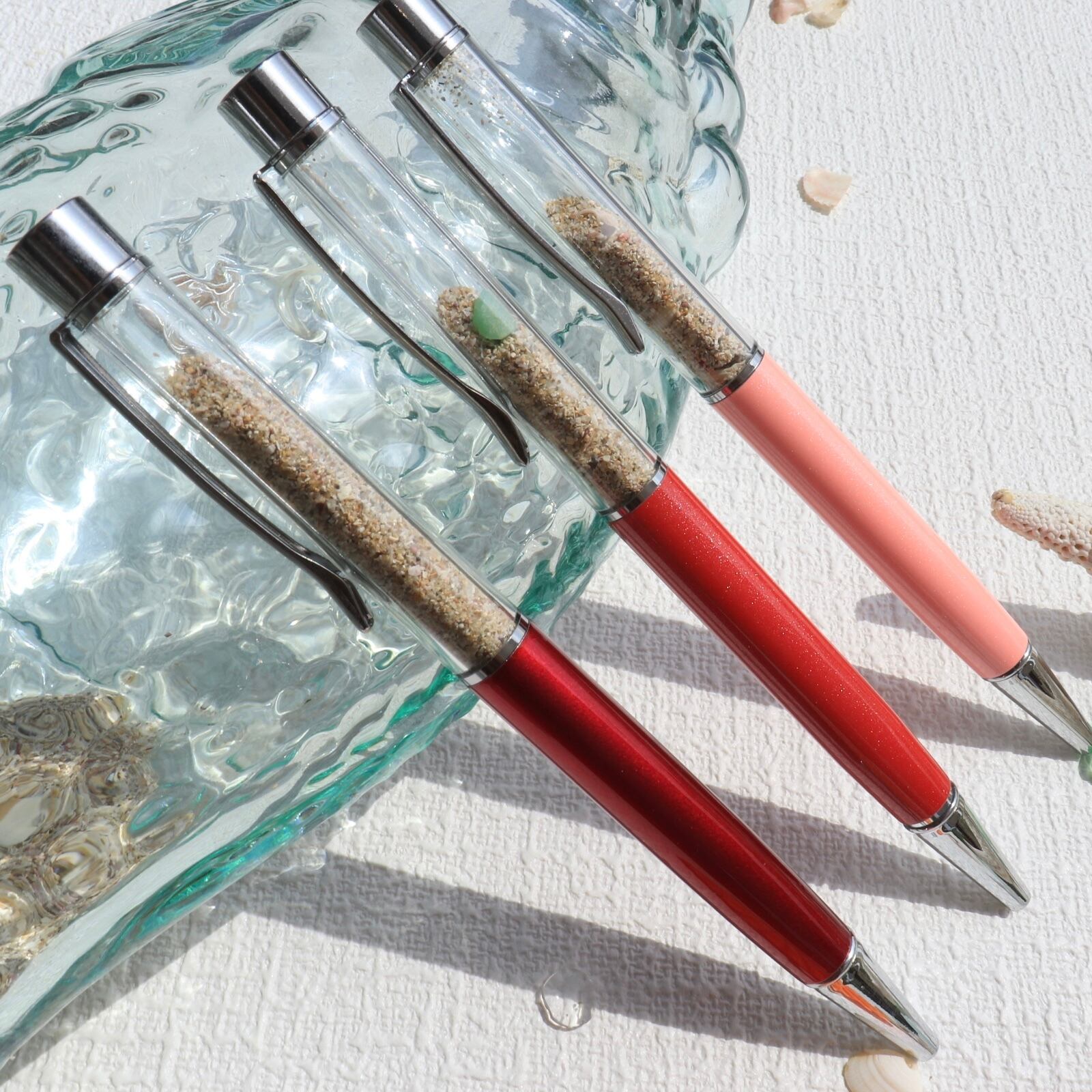 海の砂や貝殻が入ったボールペン。